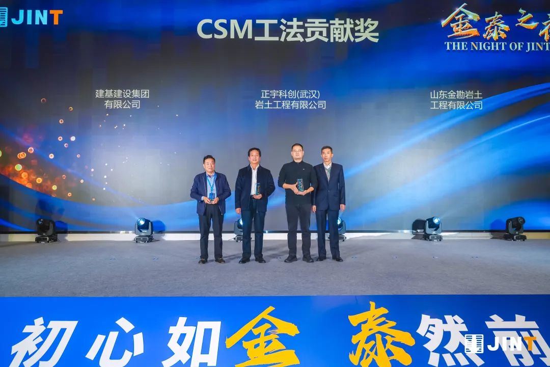 在“金泰之夜”答谢晚宴开始前,袁世国董事长、丁静羽副董事长、金泰经营团队为与金泰保持长期良好合作,对金泰产品和技术进步起到重要推动作用的行业客户、专业客户颁发了卓越合作奖、风雨同舟奖、抓斗合作奖、旋挖合作奖、CSM工法贡献奖、双轮铣贡献奖等6大类共41个奖项。